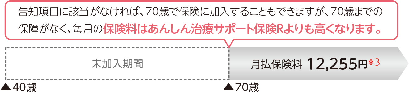 入院する確率が高まる時期に加入時のお手ごろな保険料のまま医療保障を継続できます。